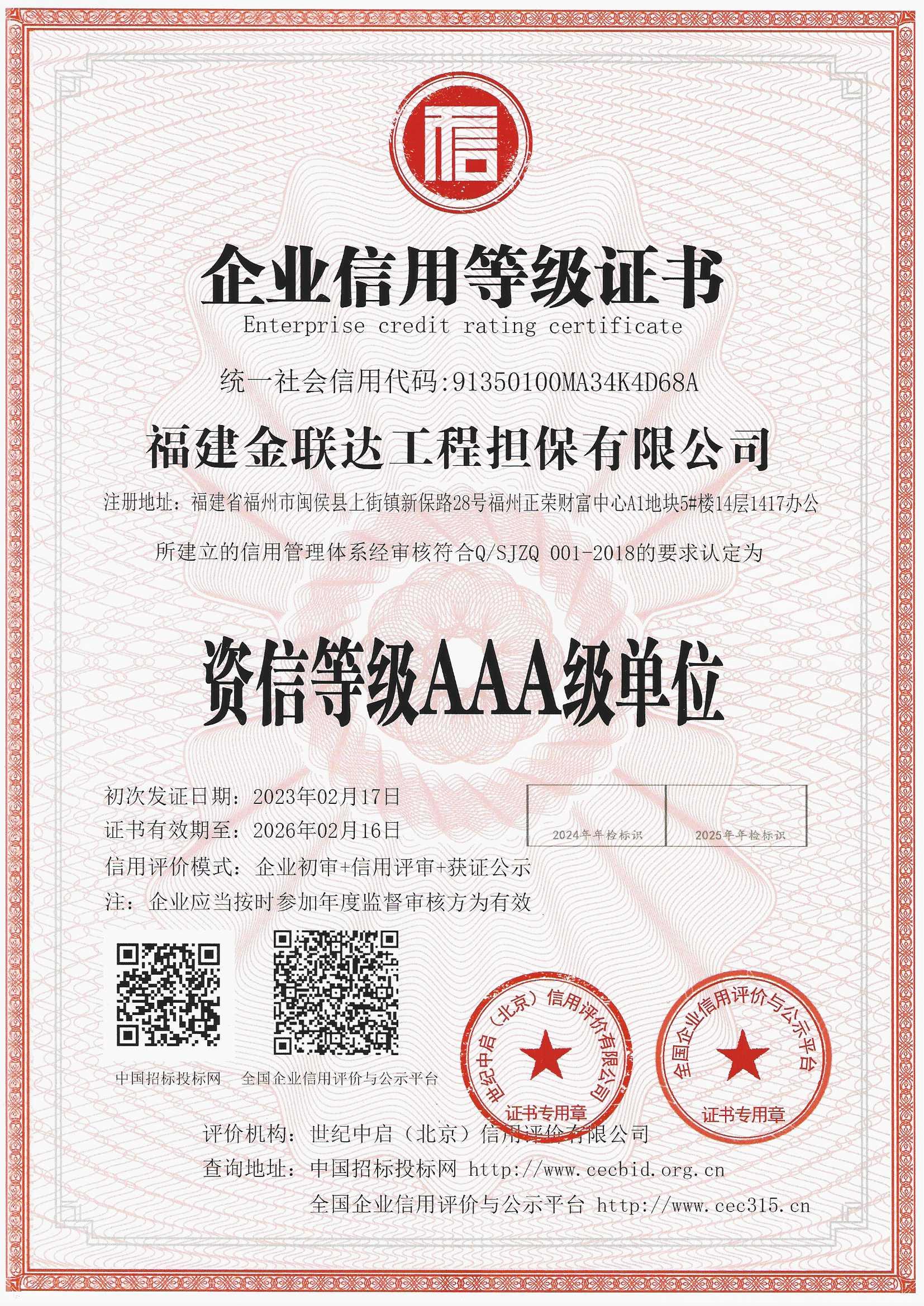 福建金聯(lián)達(dá)工程擔(dān)保有限公司